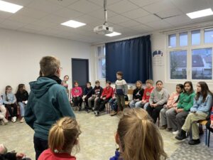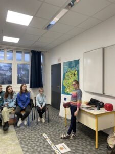 Venue de la MobilKlasse ce jour à l’occasion de la journée Franco allemande : Pour les élèves de CM2 et les 6èmes: découverte de la langue et de la culture par le jeu, animé par Michelle. Pour les 3e : activités sur le power couple franco allemand, l’amitié franco-allemande, partenariat Calvados- Unterfranken (Basse Franconie), animé par Alina. Les 3B ont aussi joué à la « Obstsalat » . De supers moments!